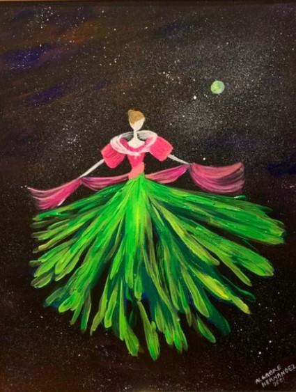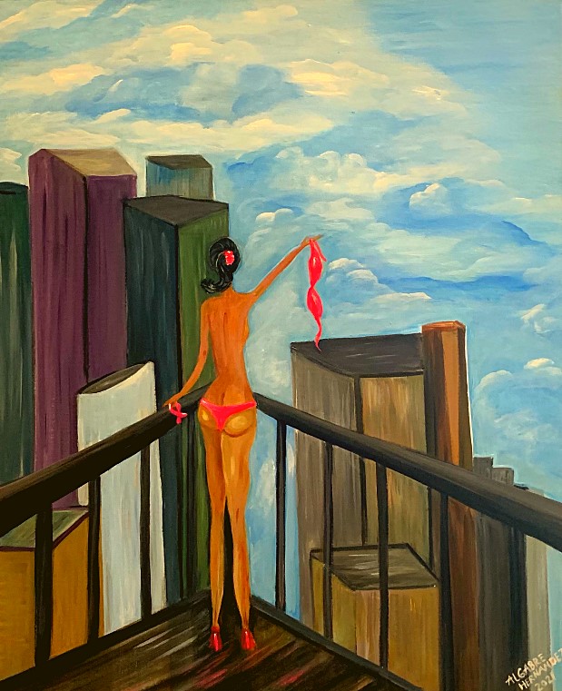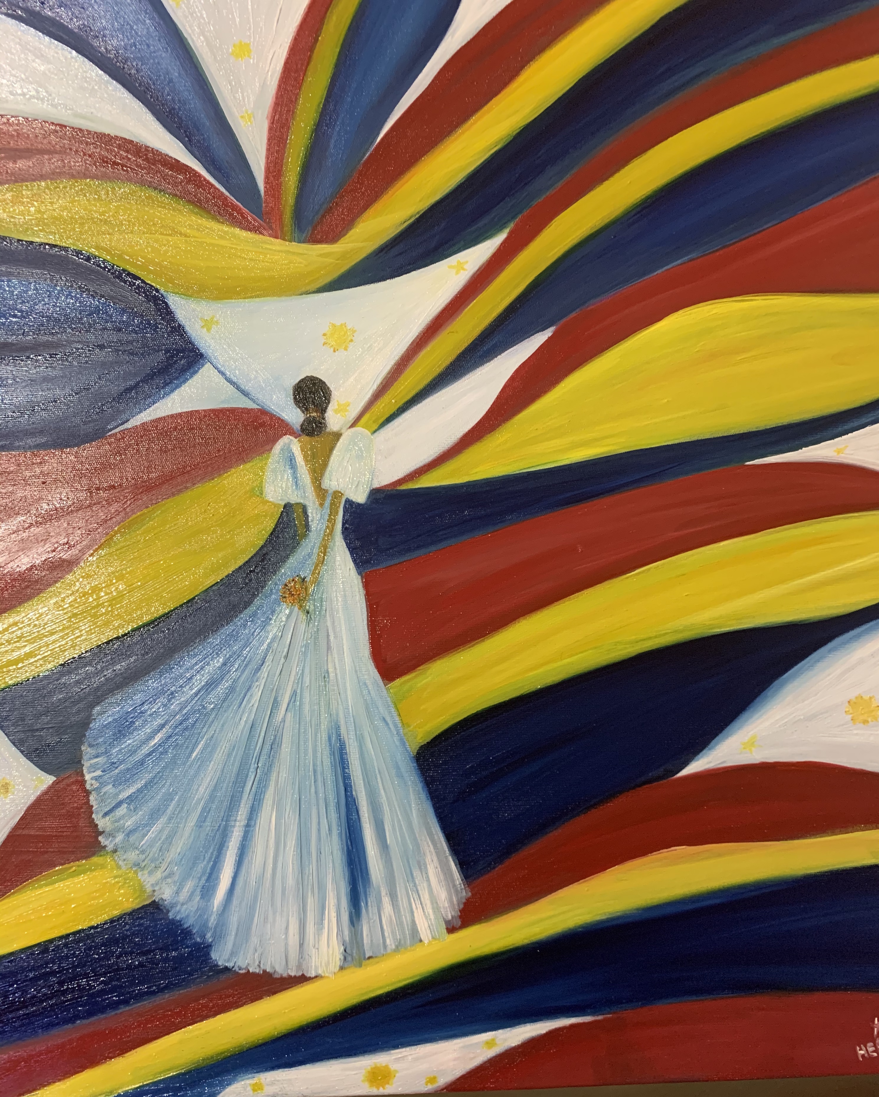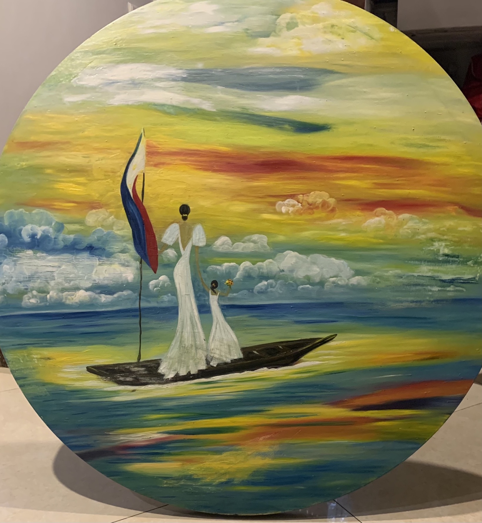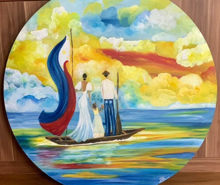 I acknowledge the challenges that migrant women are faced with but with my mixture of color, I emphasize on positive disposition. The artist believes that choosing to be positive will not only create beauty but will also make it better for oneself and for those around as well.