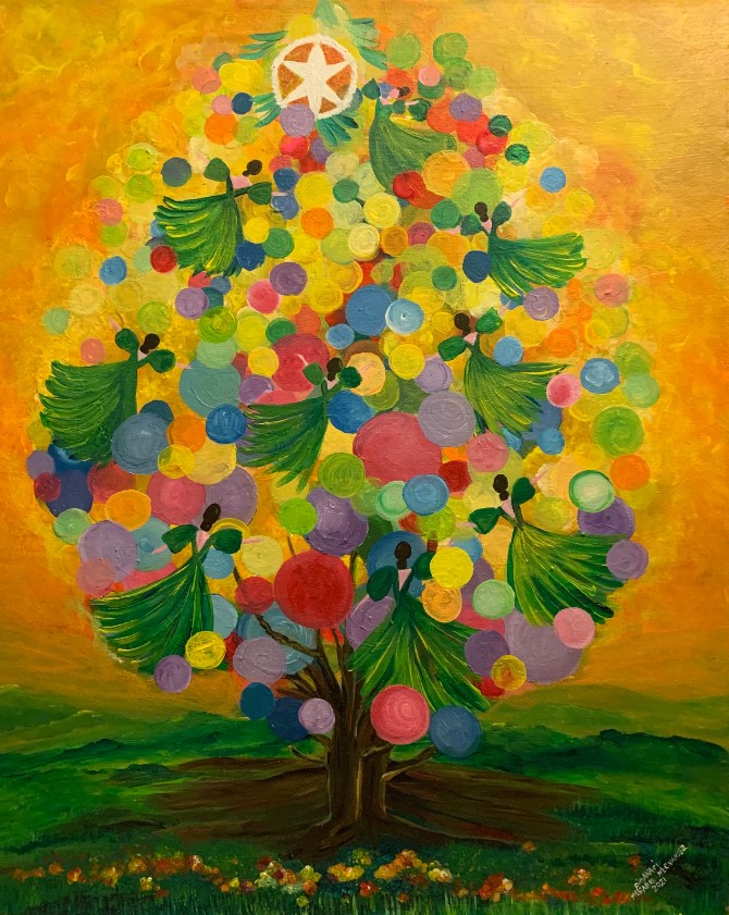 Through art, I share my dreams, hopes and imagination for the Filipino migrant women in Korea who have left their families in the Philippines to join their spouses in Korea. My wish is for these women to be surrounded by “the Color of Joy,” as they embrace the Korean way of life in building a life of love with their Korean spouses and hopefully, in building a family gifted with happy bi-cultural children.